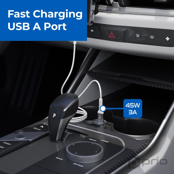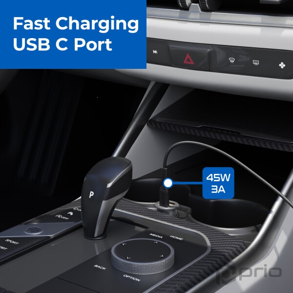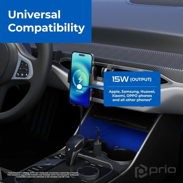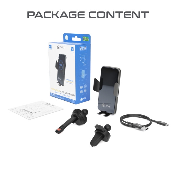 Držák do auta Prio Fast Charge, do větrací mřížky, indukce 15W, kabel USB A na USB C, černá
