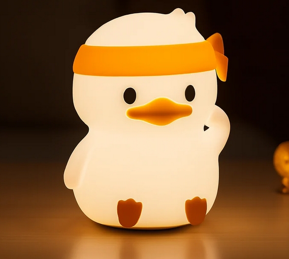 LED noční silikonová lampička Ninja duck, 3 režimy svícení, bílá