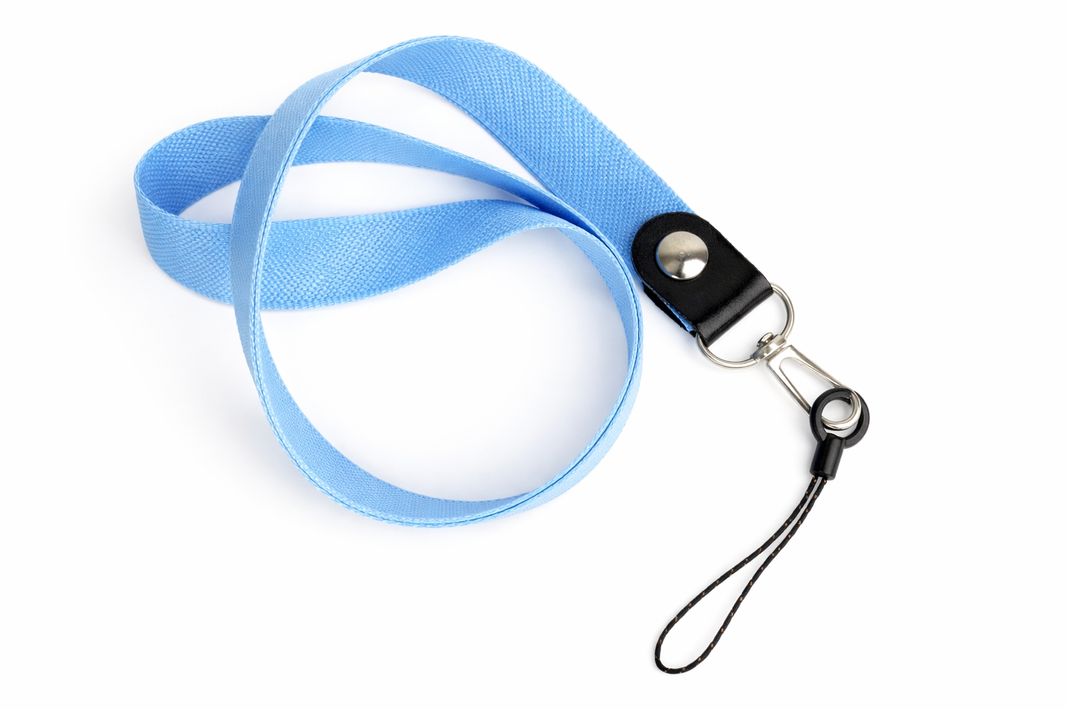 Šňůrka na mobilní telefon s karabinou, šířka 2 cm, barva světle modrá