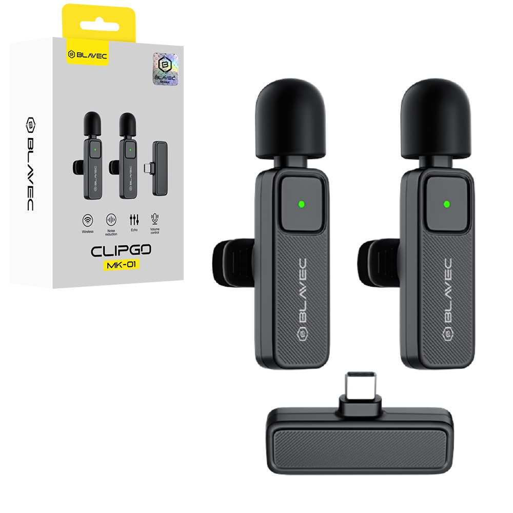 Blavec Clipgo MK-01 je kompaktní sada bezdrátových klopových mikrofonů určených pro nahrávání videa, živé streamování a online chatování. Připojení 2,4 GHz zajišťuje stabilní signál a velmi nízkou latenci (<20 ms), zatímco technologie Plug & Play umožňuje spustit nahrávání bez jakýchkoli aplikací nebo konfigurace. Všesměrový charakteristika mikrofonu, dosah až 20 m a až 3 hodiny provozu z něj činí ideální volbu pro mobilní použití.